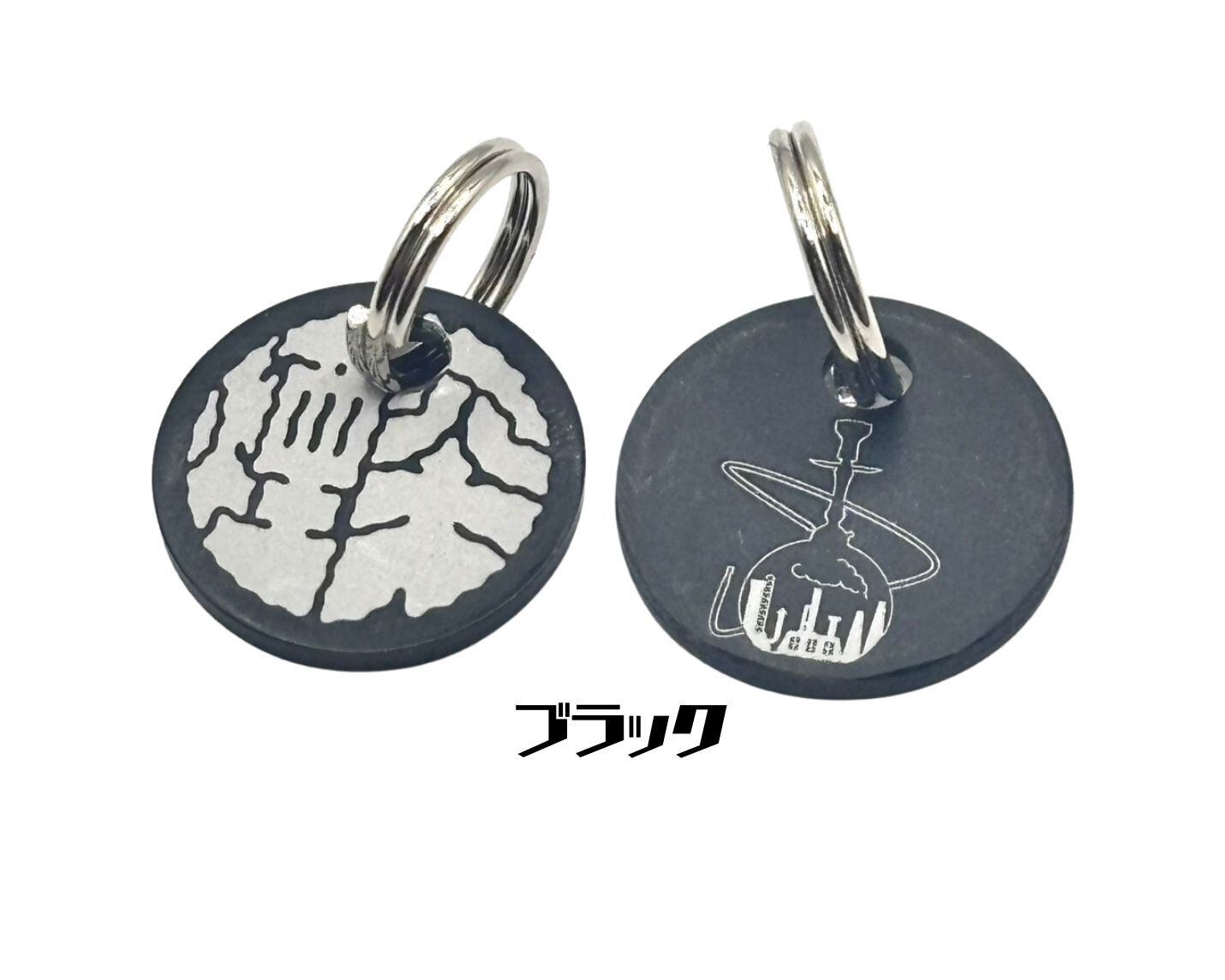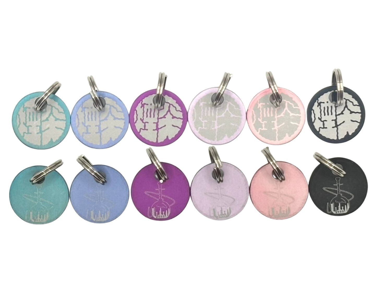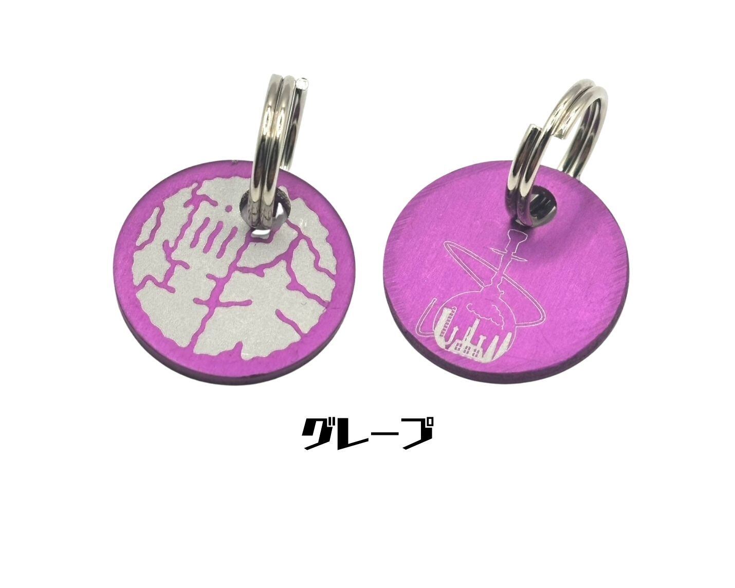 煙突のロゴを使用したチャーム。 表は煙突のロゴ、裏はシーシャのボトルに煙突のある街並みをイラストで表現しました。 軽くて小さなサイズは、いつものシーシャグッズのアクセントにぴったりです。 「種類を選択する」より、セルリアンブルー・ライラック・グレープ・ラベンダー・ベビーピンク・ブラックの中からお選びください。 素材:アルミ 【サイズ】 大きさ:15mm 重さ:1g