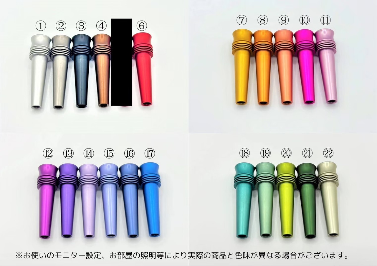 ※色一覧の写真は見本としてマウスピースを使用していますが、色の展開はホルダーと同様です。
